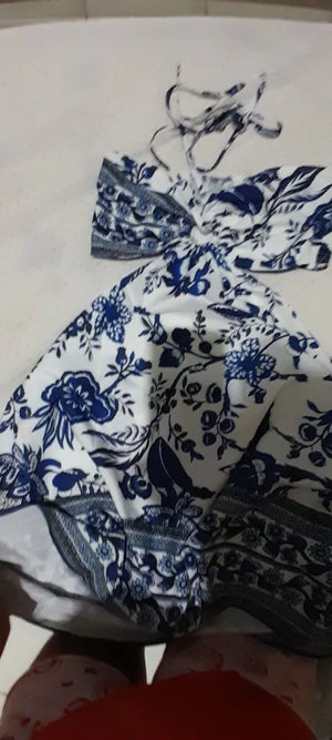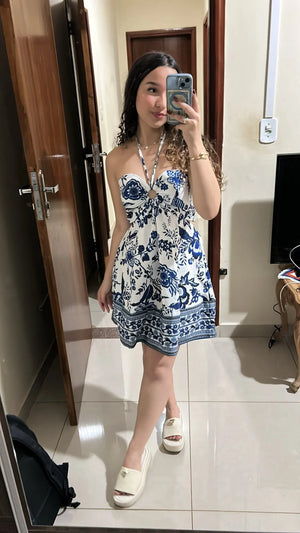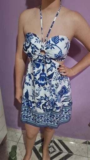 This halter-neck floral dress blends easy wear, quick-dry polyester, and a slim A-line fit to simplify packing and boost comfort on warm trips.